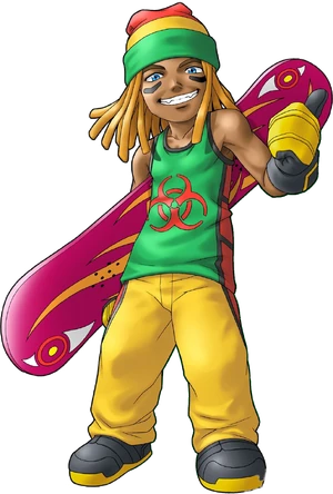 Jam is smarter than he lets on, but still tends to get carried away when it comes to showing off. When it comes to snowboarding, he calls himself the "Master Trickster," despite the public belief that Nancy is better. For this reason, they share a friendly rivalry. He is best friends with Slash, and the two are often seen as the biggest source of trouble in Snow Town, especially for Linda.